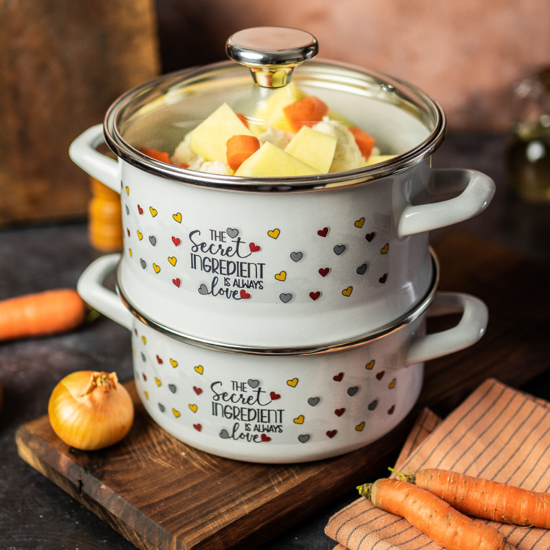 Creams and icings... chocolate, vanilla, with lemon, coffee or fruit...rich flavors, smooth and creamy, melting in the mouth! In order to be able to prepare these delicious recipes, we designed a bain-marie pot with stainless steel interior and enameled exterior creating a water tank between them. So, only one pot for delicious results!