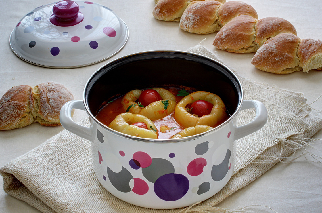 Enamel on steel cookware made of top quality materials with state-of art production technology. Contemporary design , resistivity to high temperatures, damages and scratches, usable with induction, these are the main features of this cookware, an excellent choice for the family and healthy cooking to keep 100% authentic aromas and tastes.
