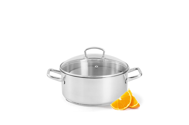 Depending on the kind of meat that is being prepared, you may even switch off heating immediately upon the phase of pan heating. The roasting will continue thanks to the thick pan bottom that accumulates and keeps the heat.